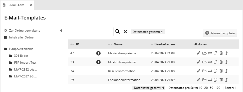 Templates: E-MailTemplates stellen einen Werkzeugkasten verschiedener Artikeltypen bereit, aus dem Sie jeden Ihrer Newsletter individuell befüllen können. Damit haben Sie wesentliche Vorteile gegenüber einem Mailing ohne Template: