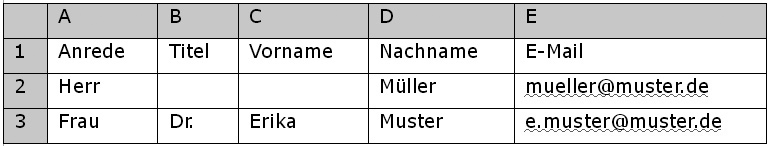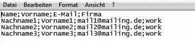 Maybe you have already collected email addresses to which you want to send a newsletter. No matter in which database these information are stored – you only need to save them in a CSV file (for example with Excel) and import them digitalwert. You can pack your CSV file as a zip to accelerate the uploading of large files. That's how it works:In the first line of the table, there should be field names – first name, surname, email address etc. An example: |