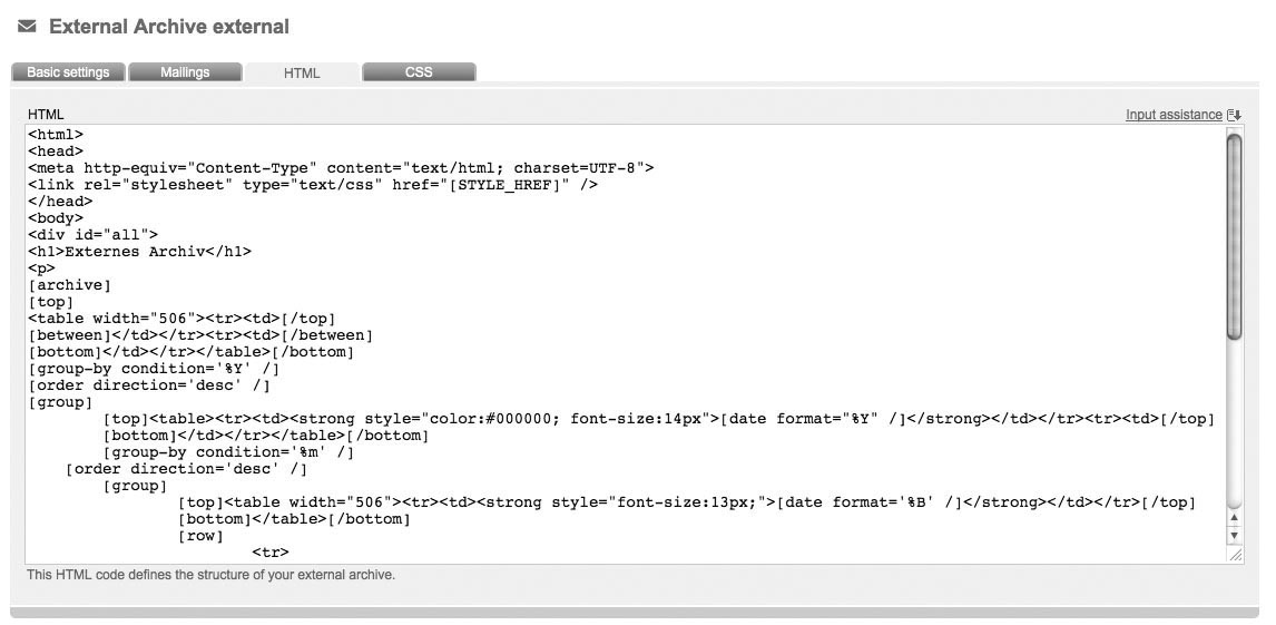 While creating your external archive, digitalwert generates an html source code in the background, which defines the structure of your external archive. If you want to edit the look of your shown archive, you have to edit the source code, which requires appropiate HTML knowledge.