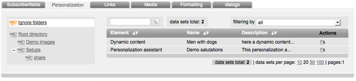 Enter a personalization-name into the name-field. You also have the opportunity to enter a detailed description. Save your settings.