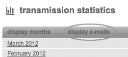 In the transmission- statistic you see the data collected from digitalwert (Traffic, Total). Also you see, if exist, the numbers of test-sendings, clicks on the subsriber-link and the number of subscribers who have completed the optin-confirmation. Next to the view 'display months' you also can select 'display e-mails'. So digitalwert outputs the above mentioned figures for each mailing.