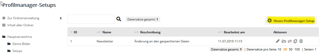 Setups: Profilmanager